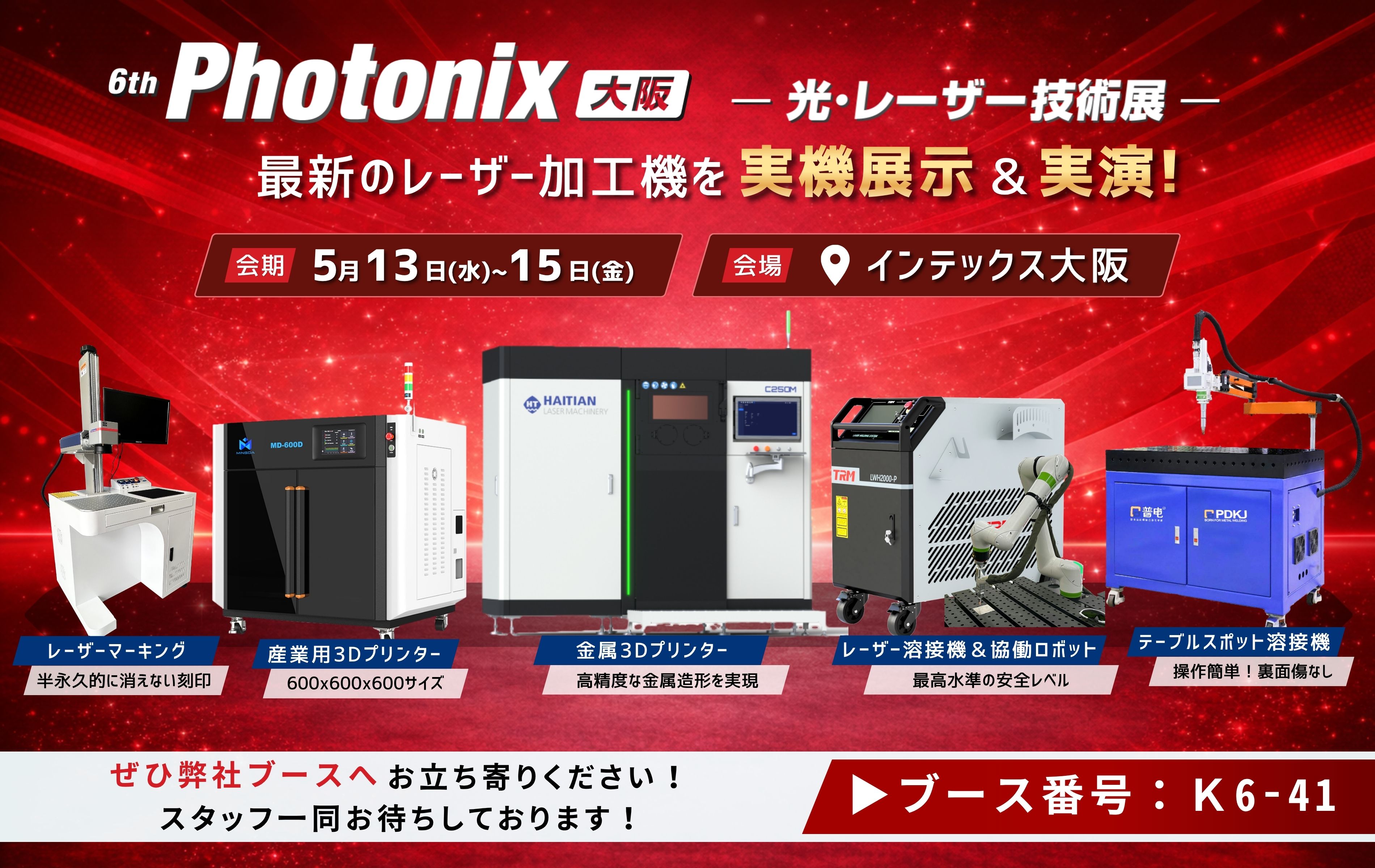 「第6回 Photonix 大阪 ― 光・レーザー技術展 ―」 に出展いたします。