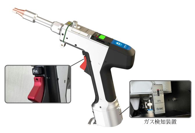 また、ガス圧の低下を検知すると自動的に装置が停止し、安全性を確保します。