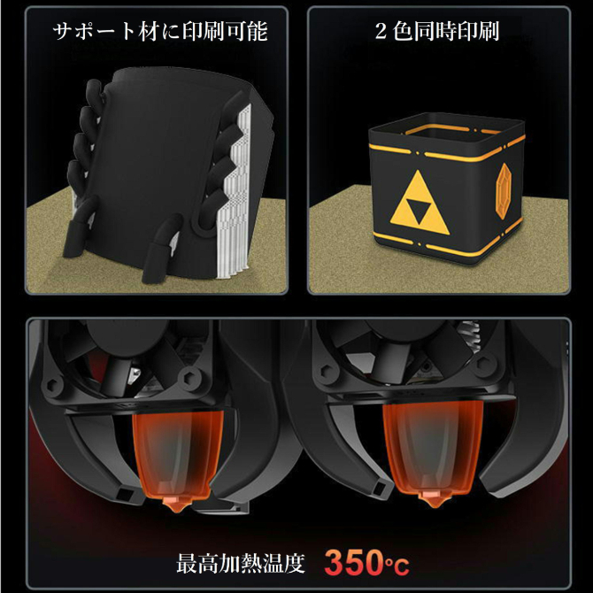 印刷速度:500mm/s(推奨印刷速度:200~300mm/s)