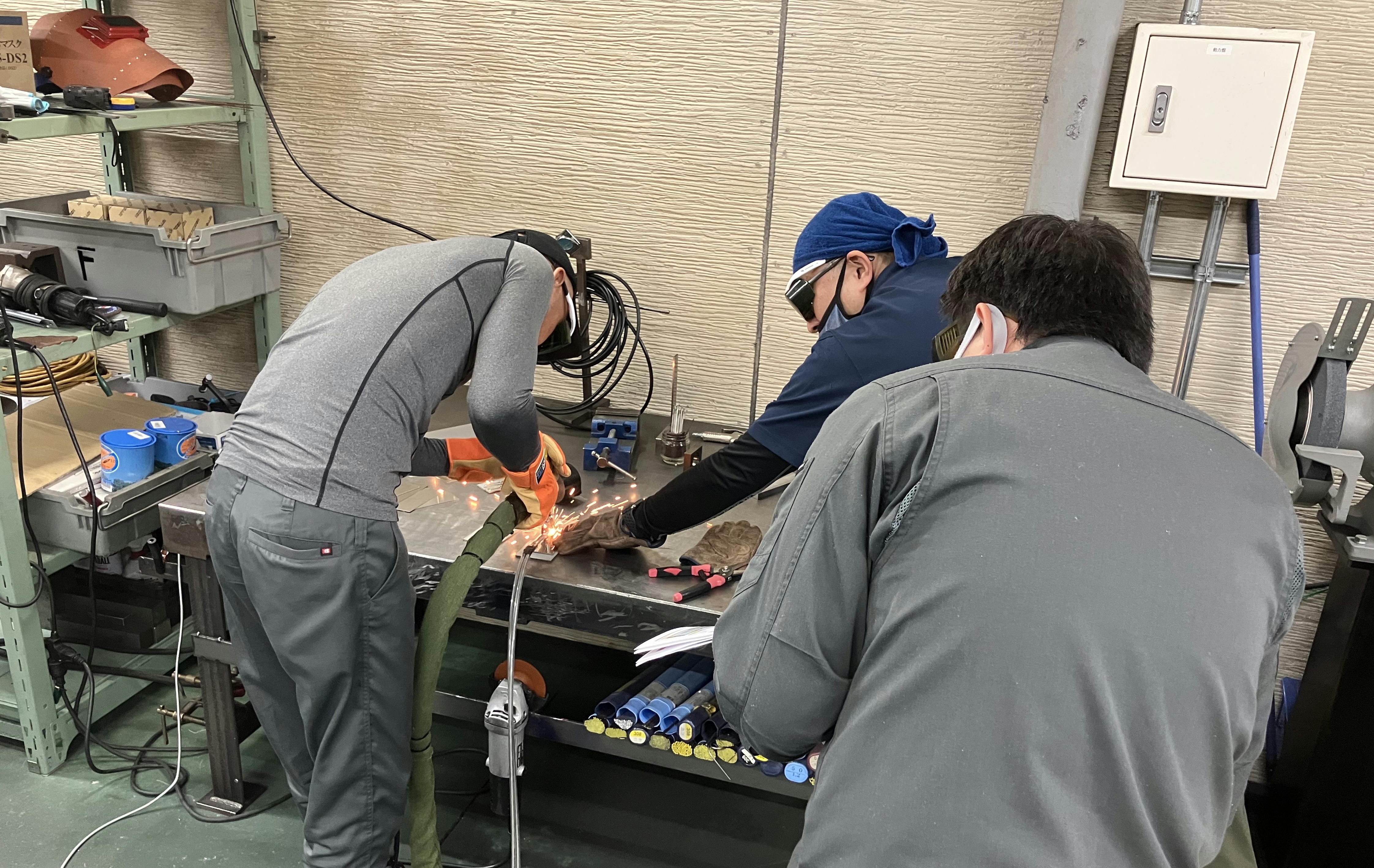 操作説明の後には、お客様にも実際に溶接をお試しいただきます。