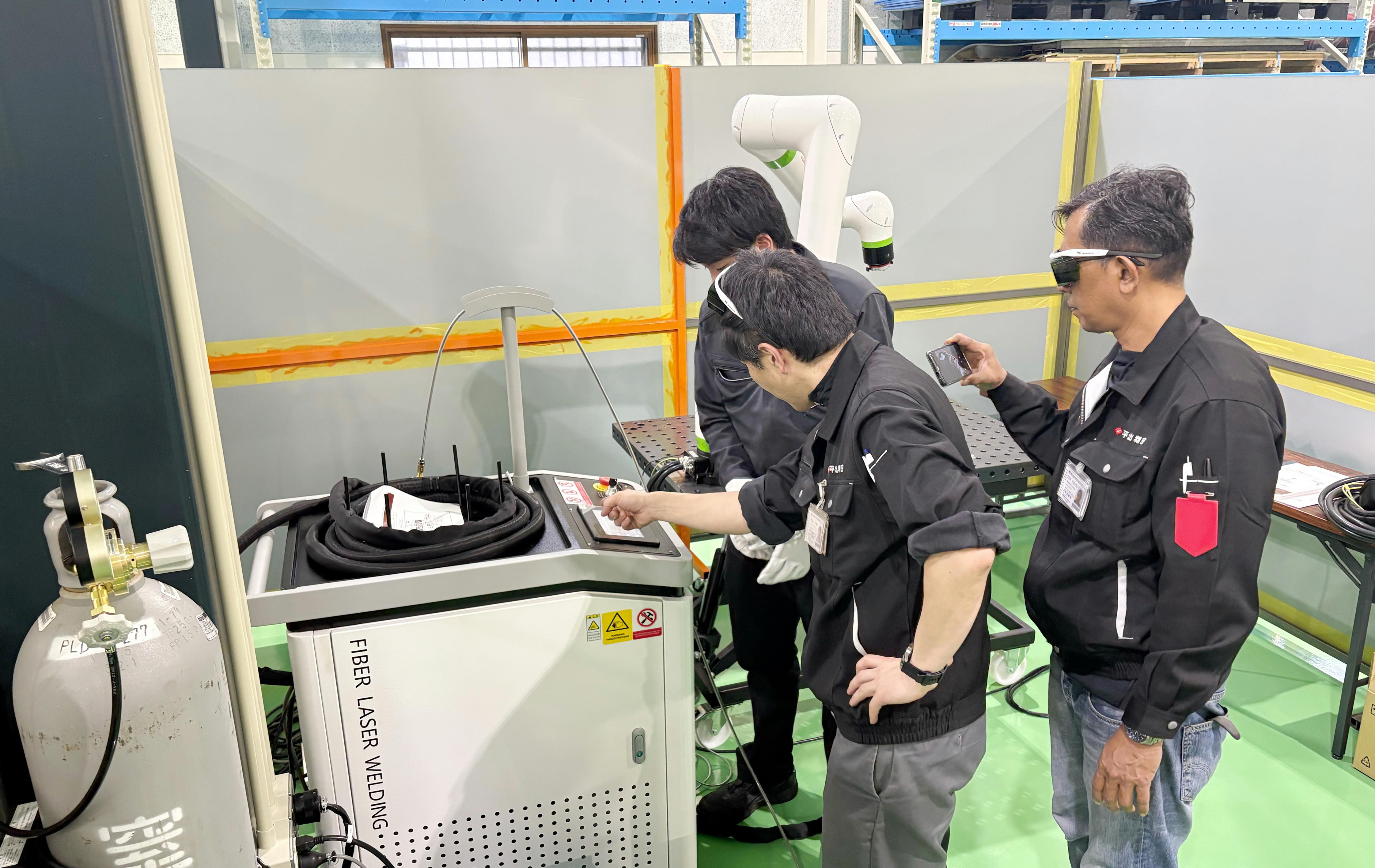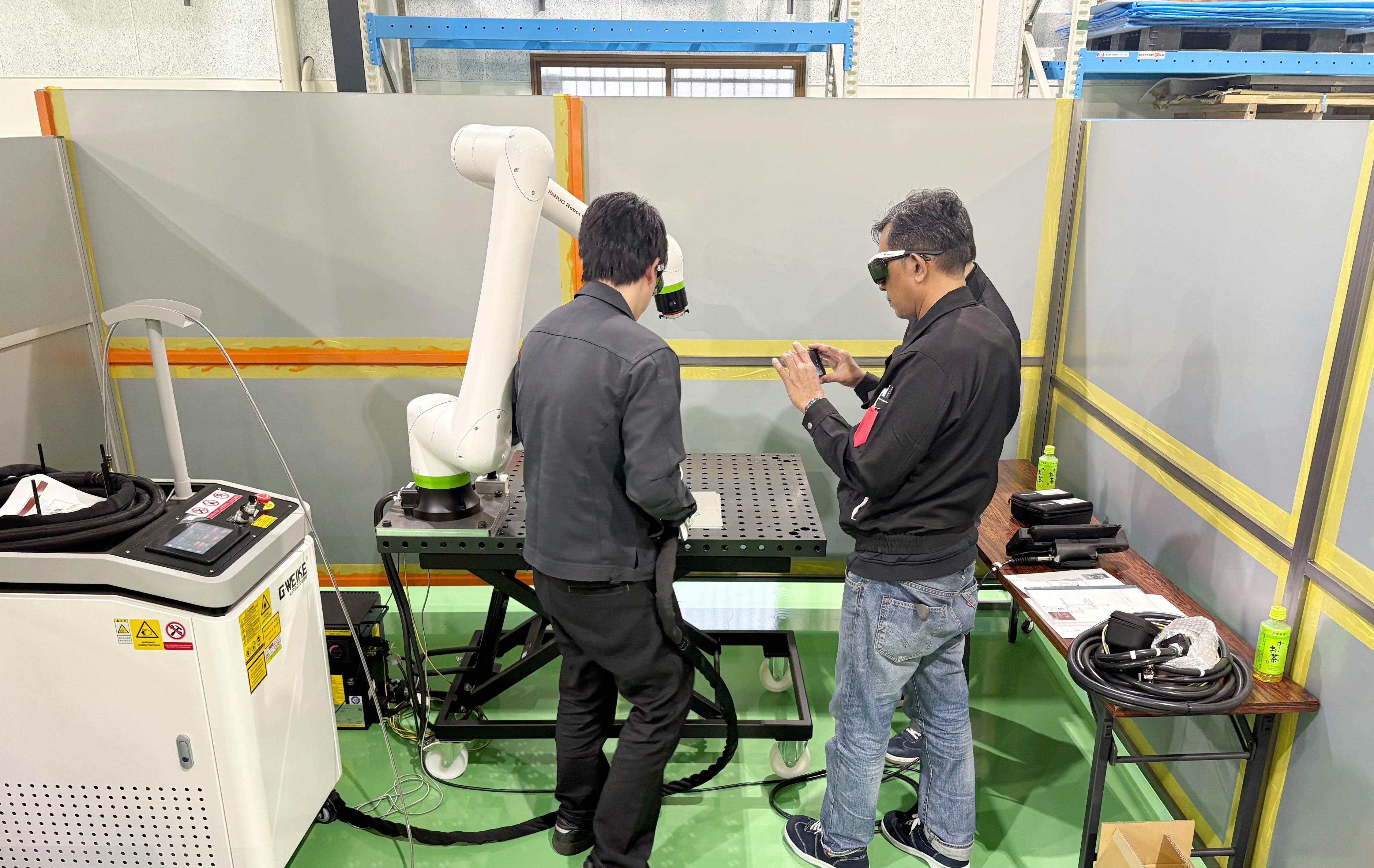 エンジニアによる設備の設置・立ち上げ作業を行い、協働ロボットおよび溶接機の設置が無事完了しました!